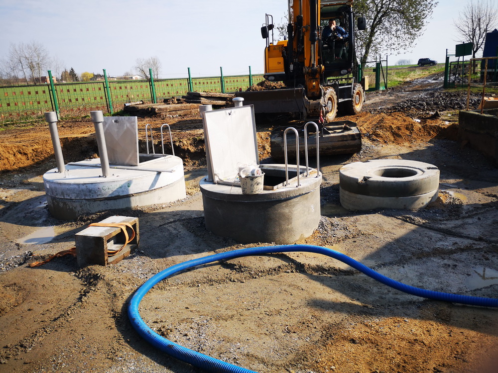 Trwają prace przy montażu przepompowni ścieków P2. Do wykonania pozostanie rozruch przepompowni oraz przywrócenie nawierzchni dróg do pierwotnego stanu.