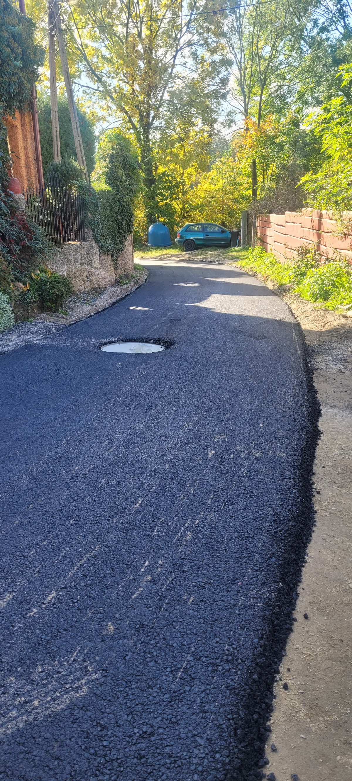 Prace przy budowie odtworzenia nawierzchni asfaltowej w miejscowości Skarżyce.